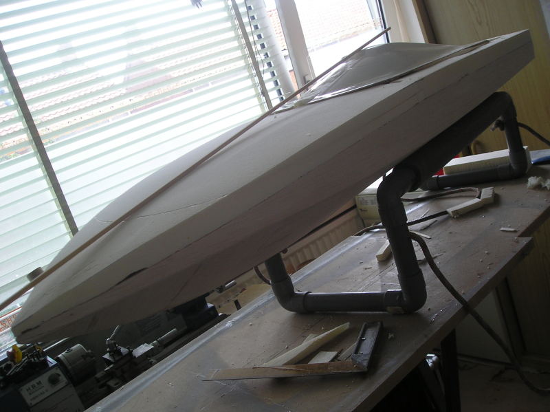 Hi, thanks. The top (deck) is made of styrofoam (high density foam) and some balsa-ribs for reference. The trick is to get the same density/hardness in materials when sanding. Styrofoam and balsa go very well together. If you sand them you take away equal amounts. If the wood is to hard, you get big dents in the foam when sanding.